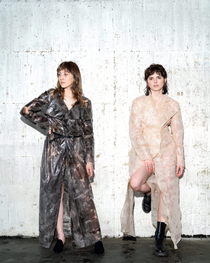 Kabát bol navrhnutý v ateliéri Cindy Fodor, fungujúcom zároveň ako laboratóriom, v ktorom experimentuje s látkami vlastnej výroby. Pre kabát Wet Look autorka vyvinula textíliu mixujúcu priehľadný tyl s autorskou látkou z alginátu.