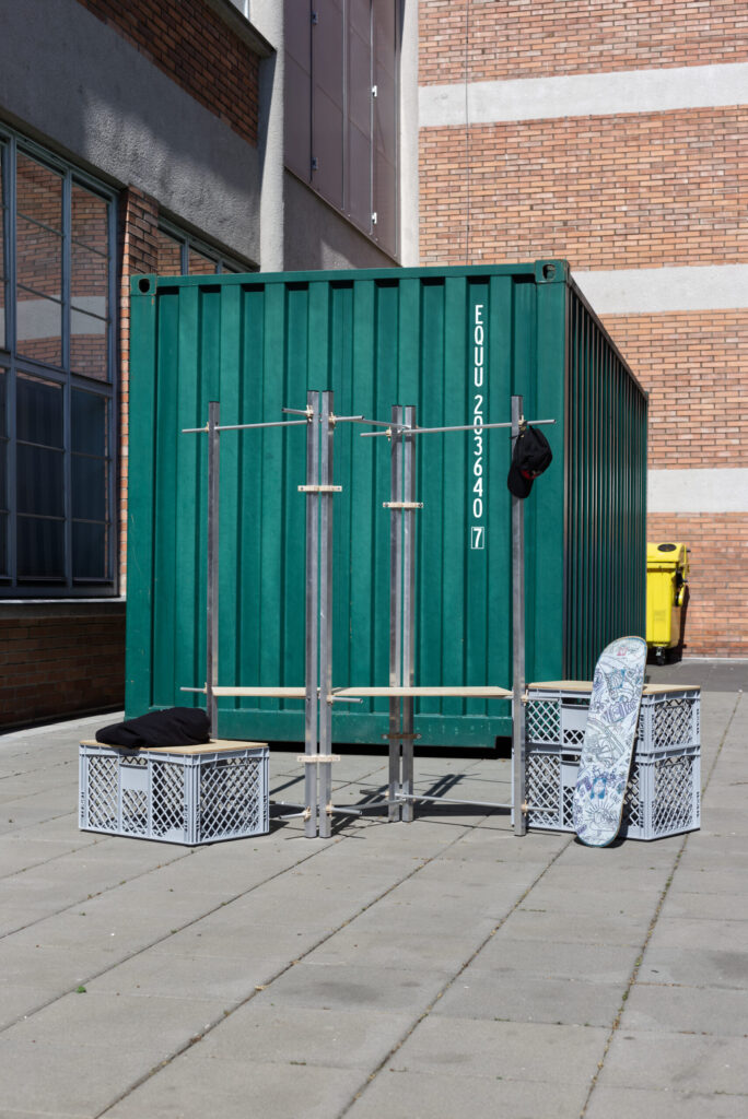 Umožňuje kombinovať vešiakové aj policové riešenia. Estetika je zámerne surová, čerpá z kultúry skateboardingu a materiálovo korešponduje s priestorom skateparku. Pop-up systém je možné chápať ako vizuálny aj ideový kontrapunkt ku klasickým výstavným systémom.